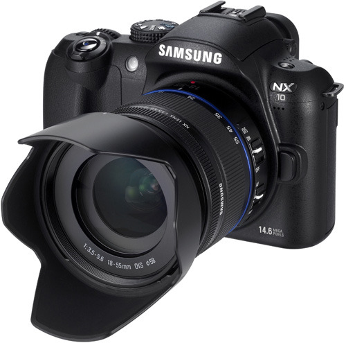 The Samsung NX10 comes with an APS-C sized sensor, the first in a mirrorless camera.