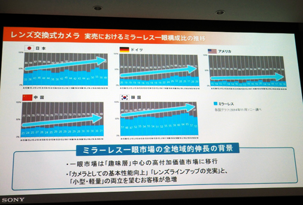 Sony graph shows how mirrorless is growing in all parts of the world.